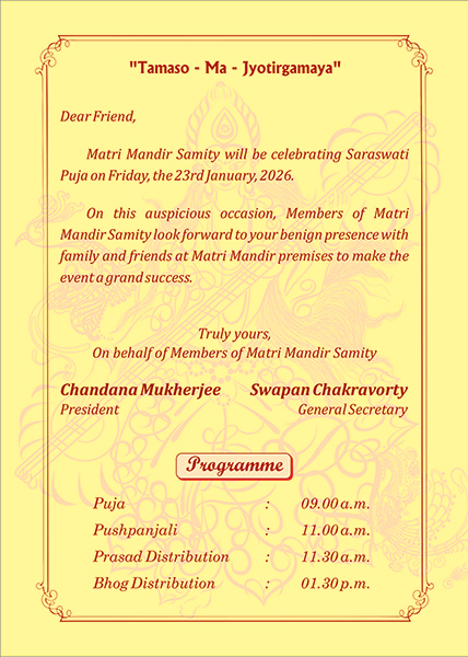 Matri Mandir Samity is a society registered in 1966 under Societies Registration Act...
