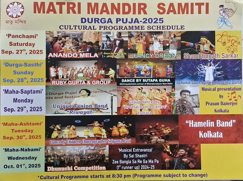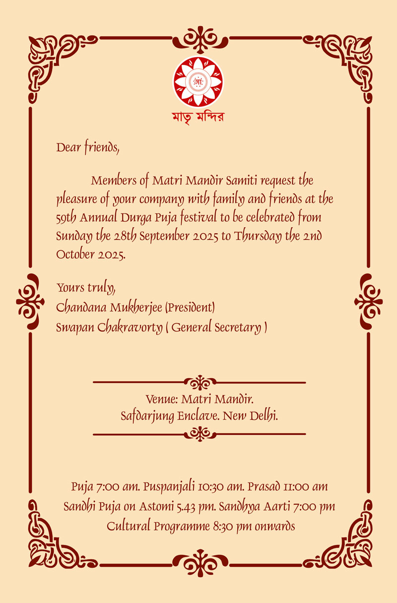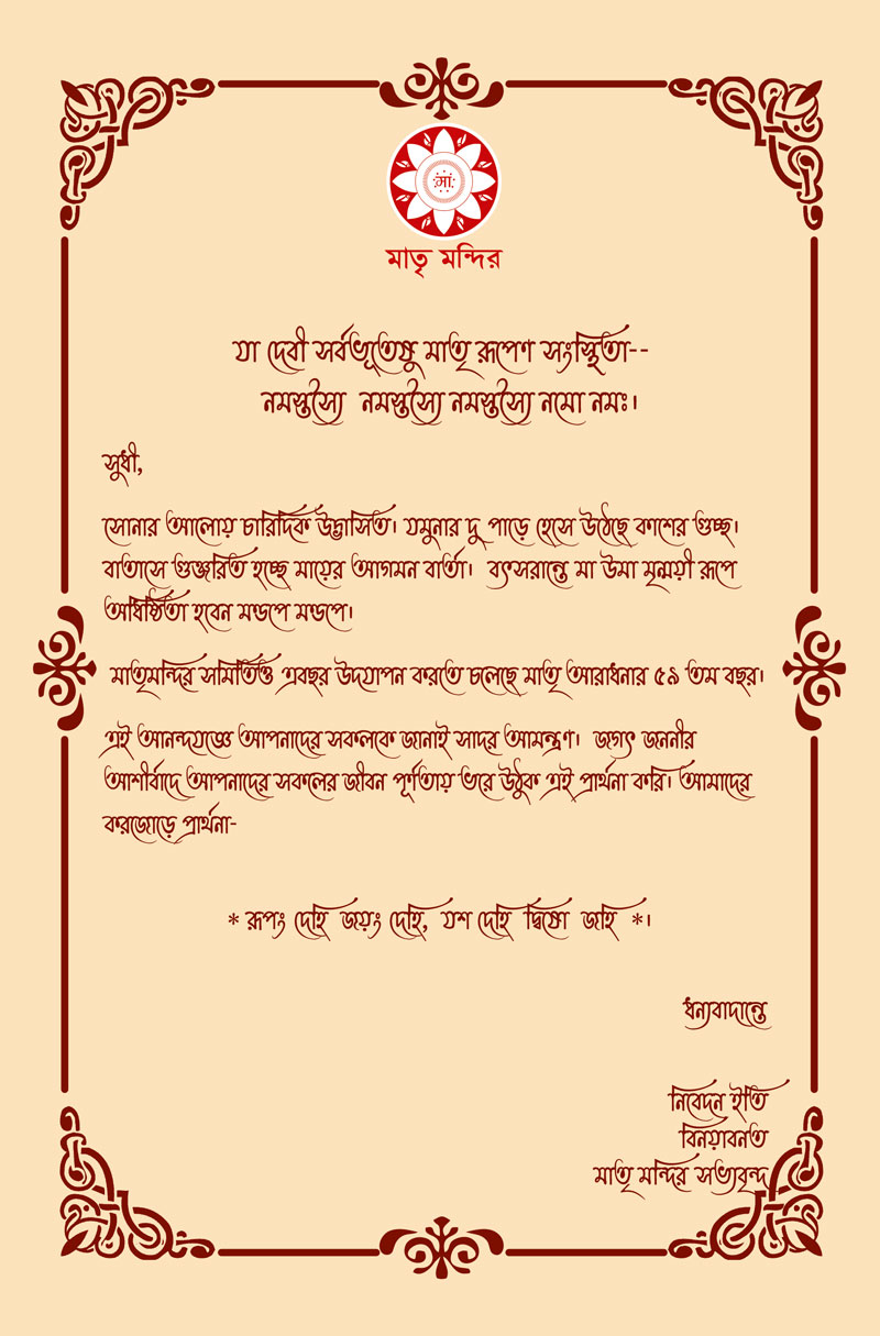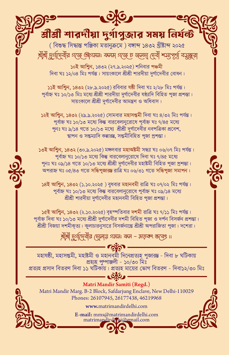 Sarees etc. can be handed over to the Matri Mandir office or the responsible member of Puja committee at the temple complex.